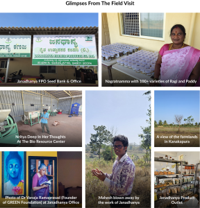 We were here to visit Janadhanya, a Farmers’ Producer Organisation (FPO) that represents the heartbeat of this resilience. Nurtured by the GREEN Foundation’s vision of intergenerational ecological security, Janadhanya embodies this movement.