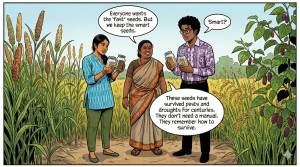 Genetic Security (Systemic): Relying on a single variety is a recipe for disaster; a single disease could wipe out a harvest. Seed sovereignty promotes genetic diversity. It ensures that if one variety fails, the farmer has others in their ‘seed library’ that can resist, preventing total failure.