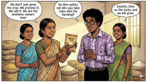 Through the formation of Producer Groups like the Annapoorna Producer Group, the narrative has flipped. Women are now running processing mills and managing finances. Today, the response to a new challenge is immediate and assertive: “Give it to us, we will grow.” They are no longer waiting for permission to be resilient.